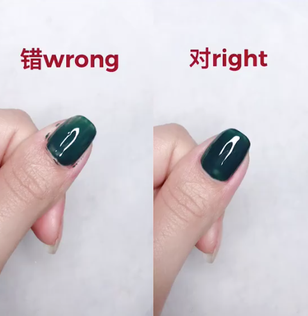 Điểm sai trước tiên mà nhiều chị em mắc khi tự sơn tại nhà đó là không biết cách sơn, khiến cho sơn dây khá nhiều ra ngoài và màu sơn đi không đều, loang lổ nhìn khá mất thẩm mỹ. Cách sơn của Hầu hết nhiều người là sơn bắt đầu từ cuối móng nhưng đây không phải cách sơn đúng.
